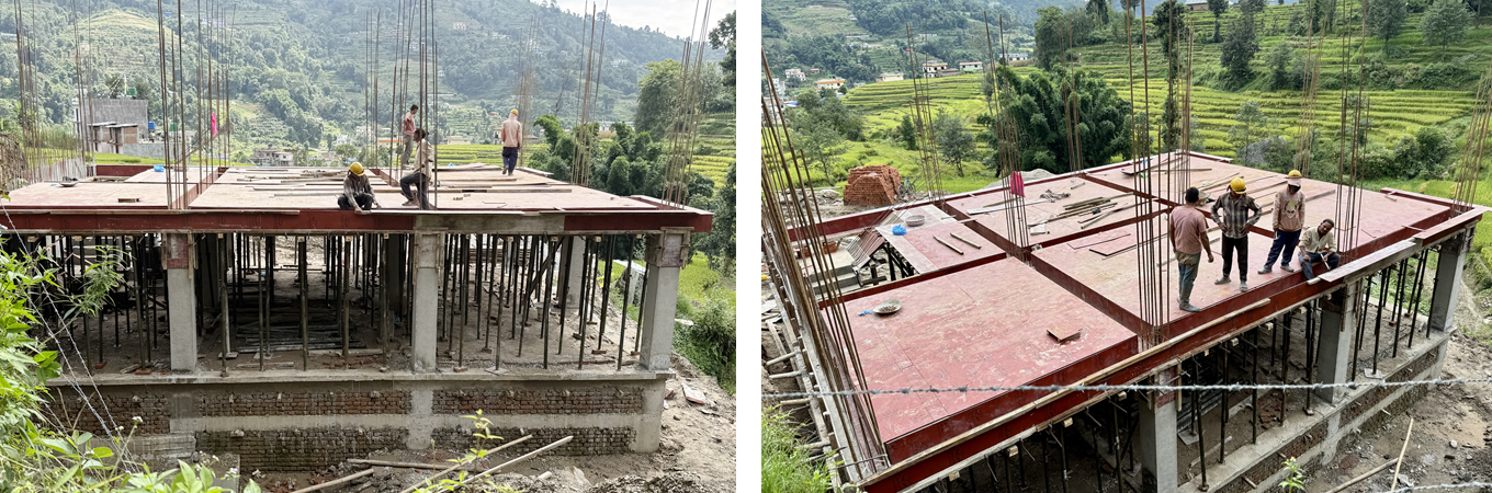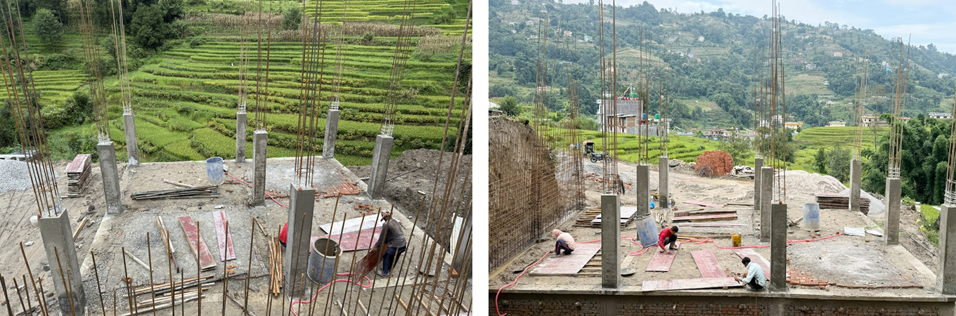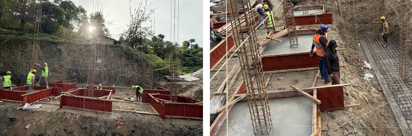 August 2025: Verschalungen für das Fundament und Säulen in Stahlbetonweise